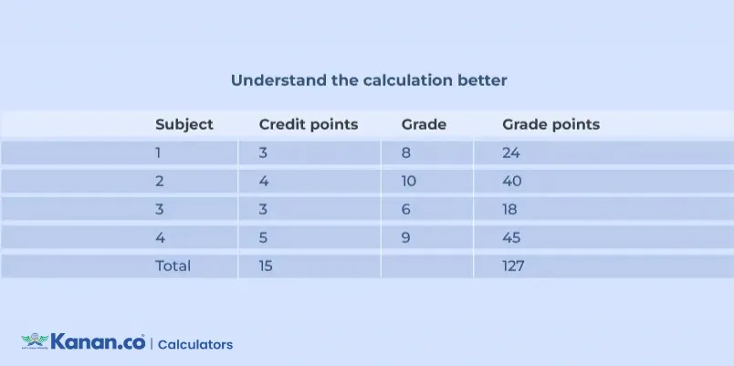Grade Points: Grade points are the standardized scores that show your performance in each subject. It is the product of Grade and the credit points for each subject.